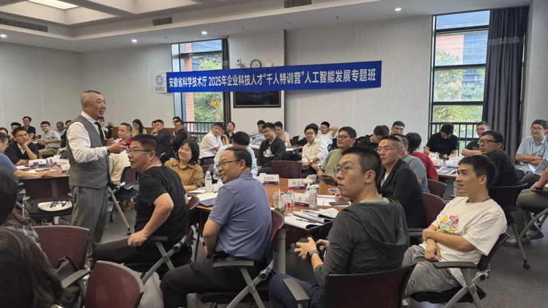 2025年9月27日,中国科学技术大学与安徽省科技厅联合举办的“千人特训营”人工智能发展专题班在中国科学技术大学国际金融研究院报告厅正式拉开帷幕。此次专题班旨在深化人工智能领域的人才培养,提升企业科技人才的专业素养和创新能力,以更好地适应人工智能技术快速发展的新形势和新需求。