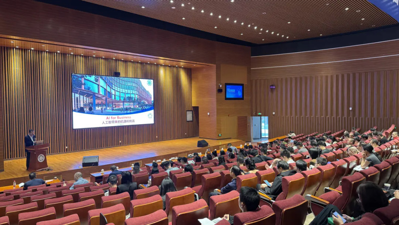 第二天的课程包括《大科企时代的布局与AI竞争》,由中国科大讲席教授、美国国家工程院院士张捷授课,探讨了大型科技企业在AI时代的战略布局和竞争策略。下午的《破冰式-商业沙盘模拟》课程则通过模拟商业环境,提升学员们的实战能力和团队协作能力。